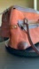 Dooney & Bourke Terracotta/Brown Monogrammed Jacquard and Leather Satchel with front pockets. EUC. 13” x 7” x 7”. Strap drop: 9”