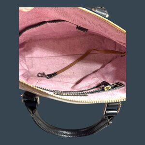 Elevate your style with this Dooney & Bourke satchel, crafted from luxurious leather. Its versatile design with top handles and crossbody option caters to various occasions and outfits. The sophisticated white color with contrasting black handles exudes elegance, making this bag an excellent addition to any wardrobe.