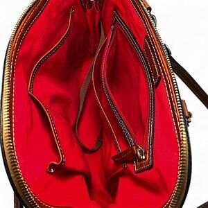 Dooney & Bourke Top Zip Cobalt Blue Satchel Purse is a stylish and spacious handbag made from pebbled grain leather. Double brown leather handles with a 4-inch and 16-inch drop, and gold hardware accents. The bag includes a mobile phone pocket, inner pockets, and an adjustable cross-body strap for added versatility. Perfect for any occasion, this satchel/top handle bag is a designer piece with a solid pattern and a versatile red cotton lining. Condition: Good Has Some Ware on The Bottom Edges SEE LAST 4 PICTURES, other than that it is clean and in great shape.