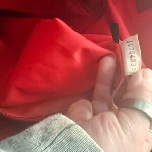 Features: Inner Pockets, Zebra Print, Leather Trim, Suede Botton