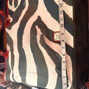 Dooney & Bourke Tote Bag Black White Zebra Print Leather Trim Double Handle
