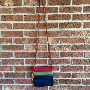 Dooney & Bourke Triple Zip Royal Blue Multi Nylon Crossbody w/Leather Strap