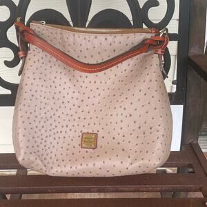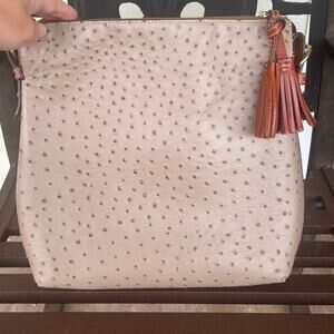 Dooney & Bourke Twist Strap Ostrich Hobo Shoulder Bag Red Interior Tassel Taupe