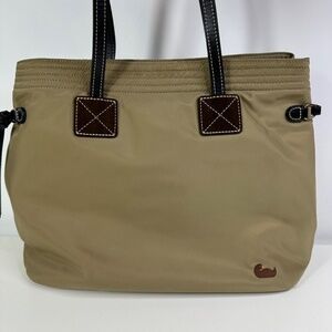 Dooney & Bourke Victoria Tan Beige Nylon Shoulder Bag With Leather Details Large