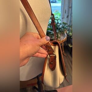 Dooney & Bourke Vintage AWL Leather Large Cavalry Bag Bone & British Tan