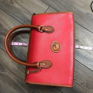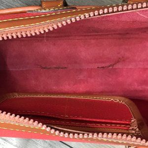 Dooney & Bourke Vintage AWL Red Pebbled Leather Satchel Handbag Zipper Closure