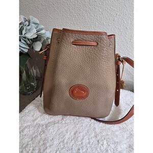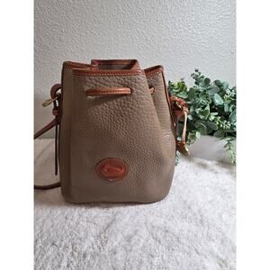 This is a gorgeous vintage Dooney & Bourke Women's Taupe Pebble Leather Drawstring Bucket Bag!