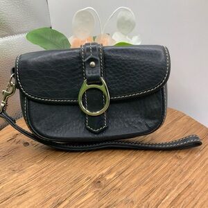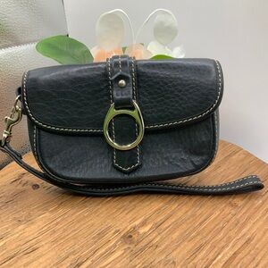 Dooney & Bourke Vintage Black Pebbled Leather Saddle Wristlet