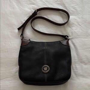 Dooney & Bourke Vintage Black Tan Medium Crossbody Hobo Bag All Weather Leather