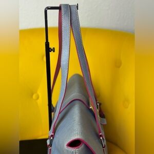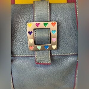 Dooney & Bourke Vintage Blue Leather Square Hearts Flap Purse Handbag Y2K