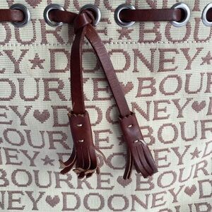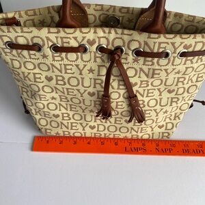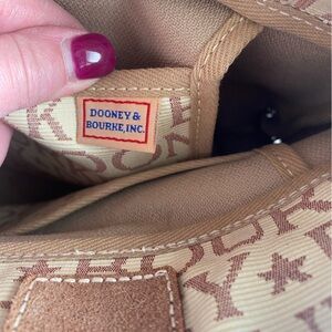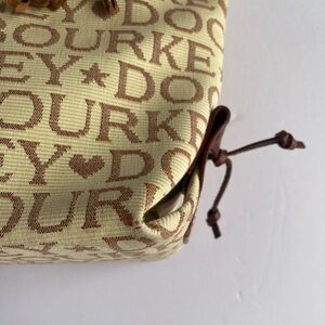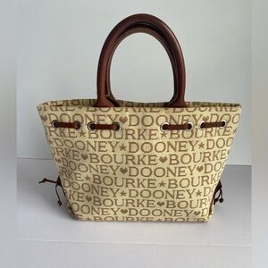 Dooney Bourke Vintage Cream Brown Logo Jacquard Canvas Small Bag Purse