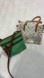 A gorgeous vintage crossbody in a light teal/green shade with rich brown leather trim.