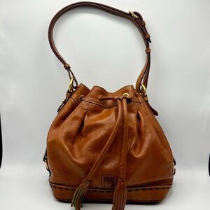 Dooney & Bourke Vintage Hattie Drawstring Bag in Natural Leather Red Inner