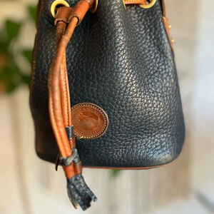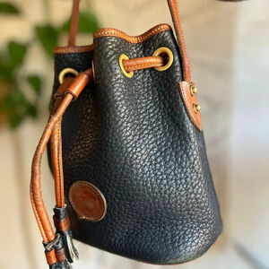 Dooney & Bourke Vintage Navy Blue Leather Drawstring Bucket Medium Crossbody Bag