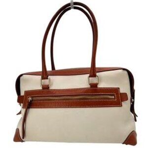 Dooney & Bourke Vintage Pebbled Leather Satchel Tote | White Tan Trim Large Bag