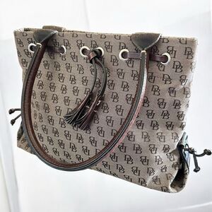 Dooney & Bourke Vintage Signature Monogram, Brown Leather Tassel, Handbag, Tote
