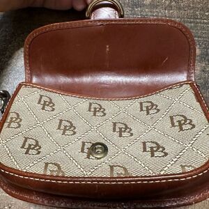 Excellent condition. Signature canvas D&B print with brown leather trim.