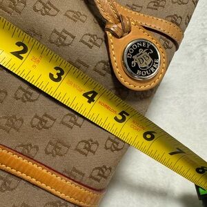Vintage Dooney & Bourke Canvas Barrel Mini Duffel Bag with Saddle Leather Trim & Straps with Hang Tag. Great Vintage Y2K Condition. Neutral color. See pics for condition & all sides/angles of purse. Measures approx 10.5" × 6" with a 6" handle drop . Has 2 interior zipper compartments & 3 slip pockets . Comes from a smoke & pet free home. Bundle to save - I have lots of purses & wallets!