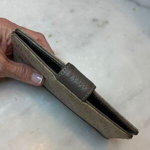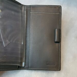 Functionality: Designed to hold a checkbook, with potential for multiple card slots and slip pockets within, typical of checkbook wallets. Includes photo holder and a pen holder slot.