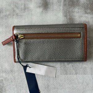 Dooney & Bourke Wallet Pebble Grain Continental Clutch Silver /Brown Trim