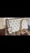 Stylish white wristlet with iconic monogram. Features gold-tone accents and a sleek design. Ideal for any outing.