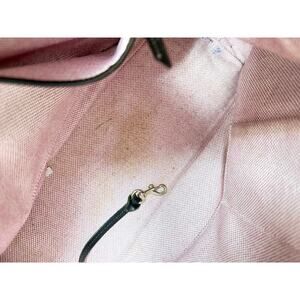 Dooney & Bourke Women's Brown Crocodile Embossed Leather Double Strap Tassel Bag - it is in good, not excellent, condition. The lining is stained, and it is missing a slide on one side where the tassels come together. Outside doesn't look bad at all.