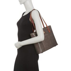 Dooney & Bourke Womens Grey Small Lizard Embossed Leather Lexington Shoulder Handbag NWT