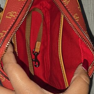 Dooney & Bourke Women's Loni Signature Logo Crossbody Bag Red/Tan NWOT