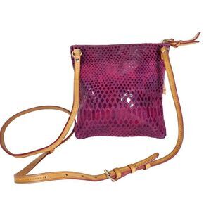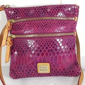 Dooney & Bourke Women's Raspberry Leather Snakeskin Embossed 3 Zip Crossbody Bag. RARE