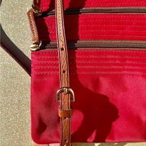 Dooney & Bourke Womens Red Triple Zip Adjustable Strap Crossbody Travel Bag