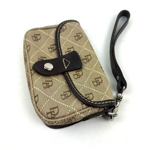 Dooney & Bourke Wristlet Brown Canvas Leather Signature Vintage Clutch