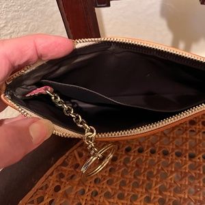 Nice gently used condition. Some discoloration on leather. Please refer to photos. Measurements approximately 7 3/4” W X 4 1/4” T. Discovered I’m not a wristlet kind of gal. lol