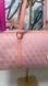 Elegant pink shoulder bag with monogram design. Features a heart-shaped tag. Perfect for daily use.