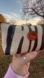 • Black and cream zebra stripe canvas exterior accented with tan leather logo patch and trim.