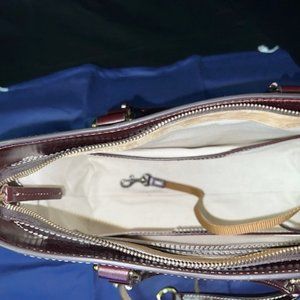 Dooney & Bourke brown handbag with white stitching. Crossbody strap.