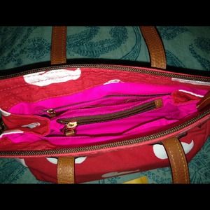 Red bag with white ducks, leather straps & hot pink interior. Roomy bag, lots of pockets on inside! Comes with D&B authenticity registration. This was a gift that wasn't my style - never been used, perfect condition, adorable bag 👜