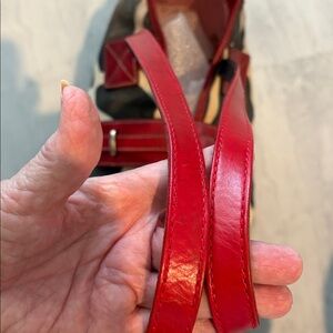 Dooney Bourke giraffe pattern shoulder bag tote red leather trim side tops EUC