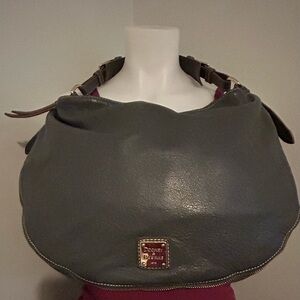 Dooney & Bourke grey leather hobo zip shoulder bag, bottom expandable to 3”, normal wear and tear, pen burst in inside zipper, great bag