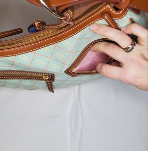 Dooney & Bourke leather and teal canvas watermelon hobo purse