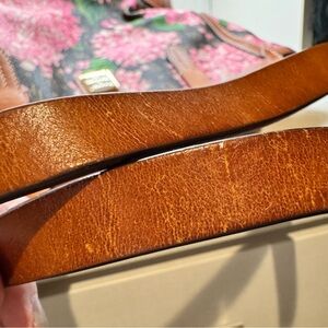 Elegant tote featuring pink floral pattern. Brown leather trim adds sophistication. Perfect for everyday use. Some wear as shown.