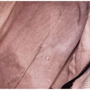 Dirty and spots inside. Inside is dirtier than the outside. A couple small white spots where the fabric is worn. Please refer tophotos