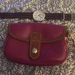 Adorable small patent purple (raspberry) wristlet. Leather trim. No signs of wear.
