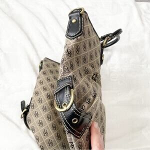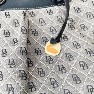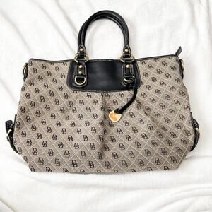 Dooney & Bourke tan logo brown large satchel zippers inner pockets