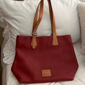 Dooney & Bourke red and tan leather tote bag. Authentic. Mint condition. 12” high 16 1/2” width