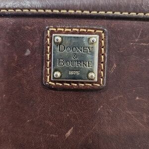 Dooney & Bourke vintage leather wristlet. zipper had one stitch that came undone which I've tied. shown on pictures, could be sewn/stitched I'm just not good with that. otherwise good condition. Beautiful chocolate brown, interior has one slip pocket. zip top.