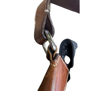 Leather shows minor wear and natural creasing. Top to bottom = 10 inches, side to side = 11 inches.