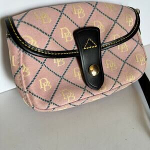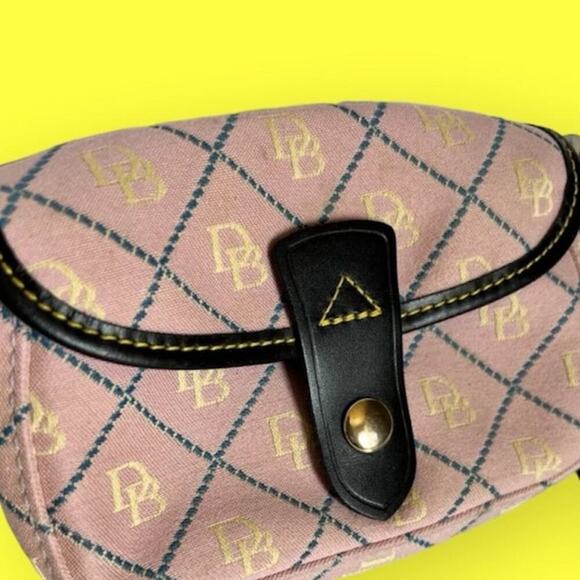 Dooney & Bourke vintage women’s mini wristlet bag, signature logo. Pink with black leather closure and wristlet strap, that is detachable.
