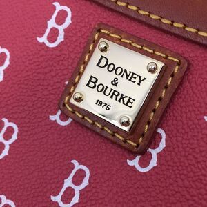 Dooney & Bourke MLB Boston Red Sox red coated canvas with brown leather trim wristlet. In excellent used condition. Small dark mark on back on the leather, see last photo. Measurements in photos. Gold tone hardware.