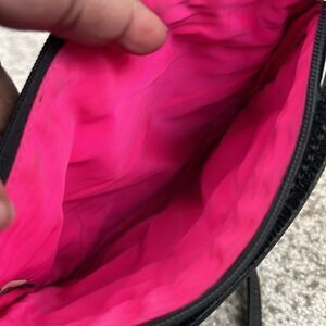Black nylon bag with 2 zipper slots outside & logo. Zipper closure with silver hardware. Great lightweight bag. VGUC