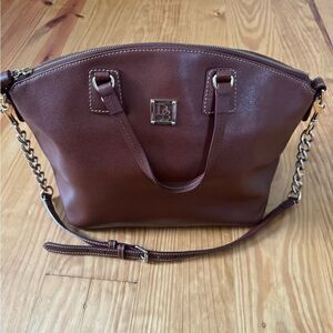 Dooney & Bourke Dome Satchel Bag Leather Brown Double Handles Chain Strap
